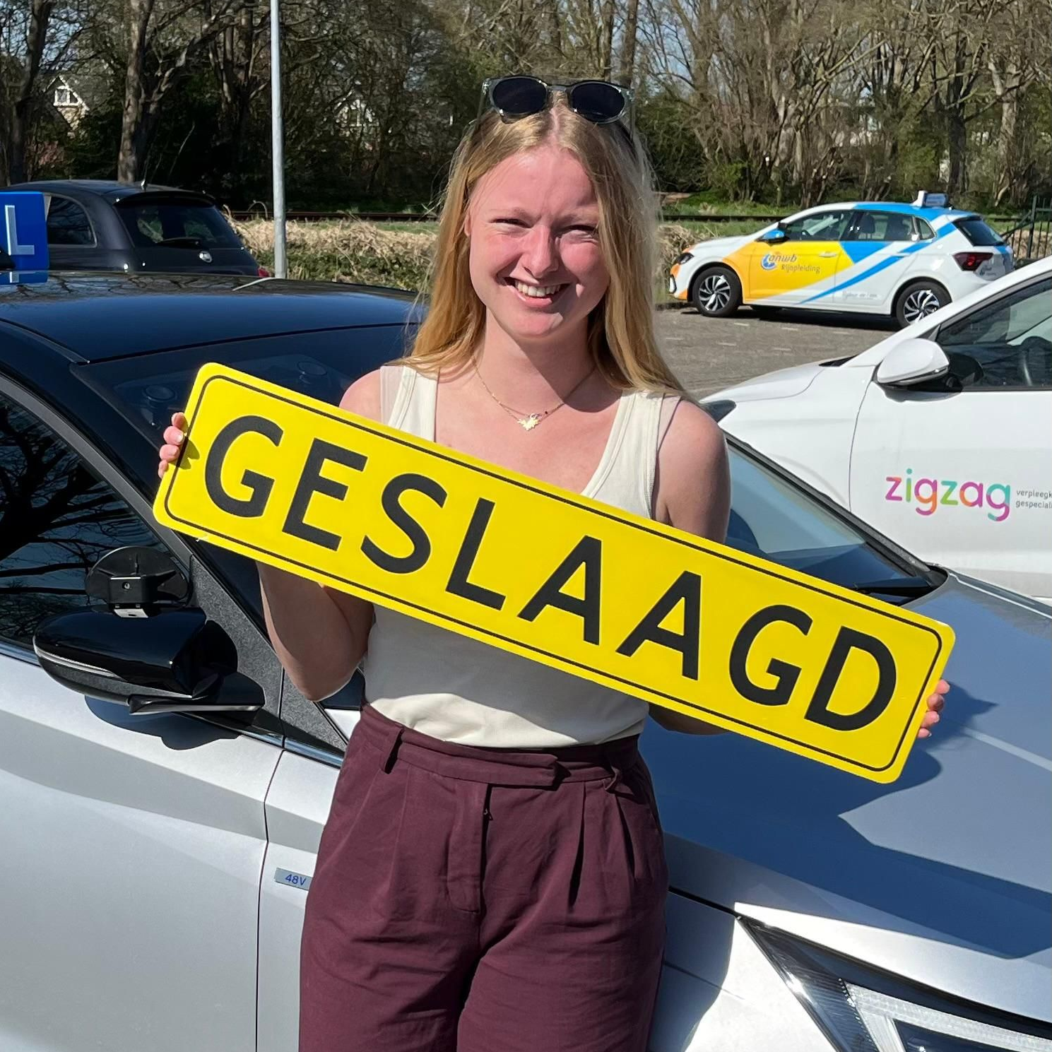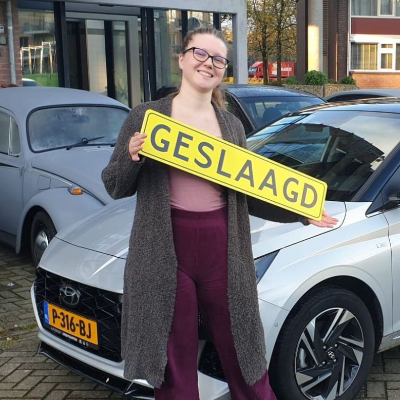 "Voordat ik aan rijlessen begon vond ik het idee van auto rijden best spannend, maar al snel zorgde Rob er voor dat ik me comfortabel voelde. Zijn lessen zijn duidelijk en goed, maar ook heel gezellig. Dankzij de begeleiding van Rob heb ik nu mijn rijbewijs gehaald en ga ik zelfverzekerd en veilig zelf de weg op!"