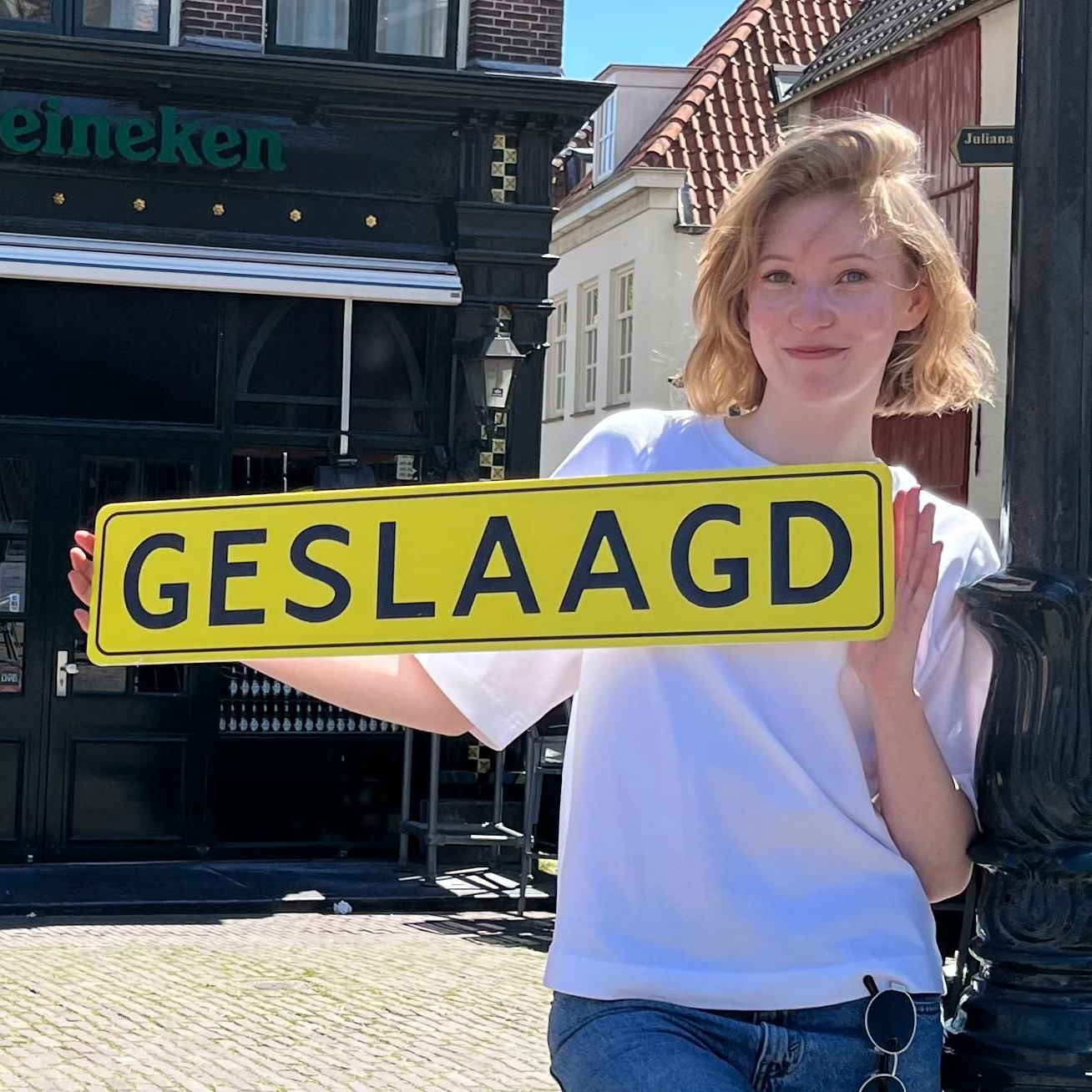 "Doordat ik mijn pols had gebroken, werd mijn examen uitgesteld. Iets later dan gepland ben ik echter in één keer geslaagd."