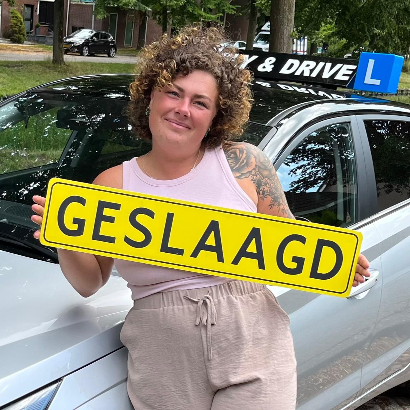 "Dankzij zijn vele geduld, leuke gesprekken en leerzame lessen met Rob heb ik nu toch eindelijk mijn rijbewijs gehaald."