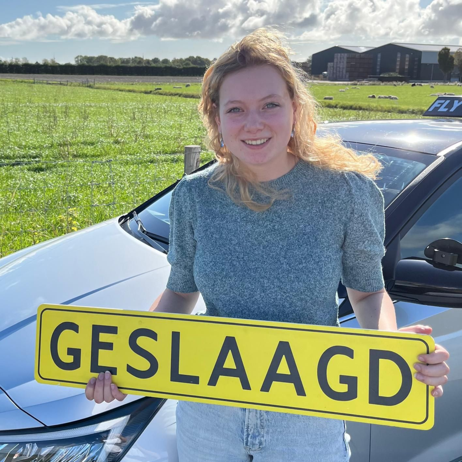 "In mijn tussenjaar werd het toch tijd voor een rijbewijs, want eerder vond ik het nog te spannend. Na een half jaartje ging het eigenlijk best snel en had ik mijn praktijk in één keer gehaald!."