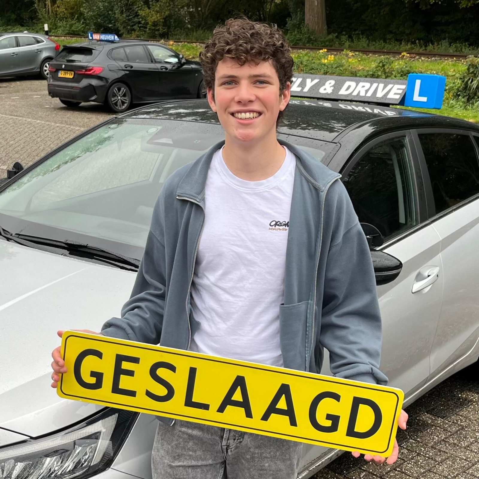 “Wanneer mijn vliegles met Rob vanwege slecht weer niet doorging, deden we een rijles. Dankzij zijn gezellige en leerzame lessen heb ik mijn rijbewijs binnen 20 uur behaald.”